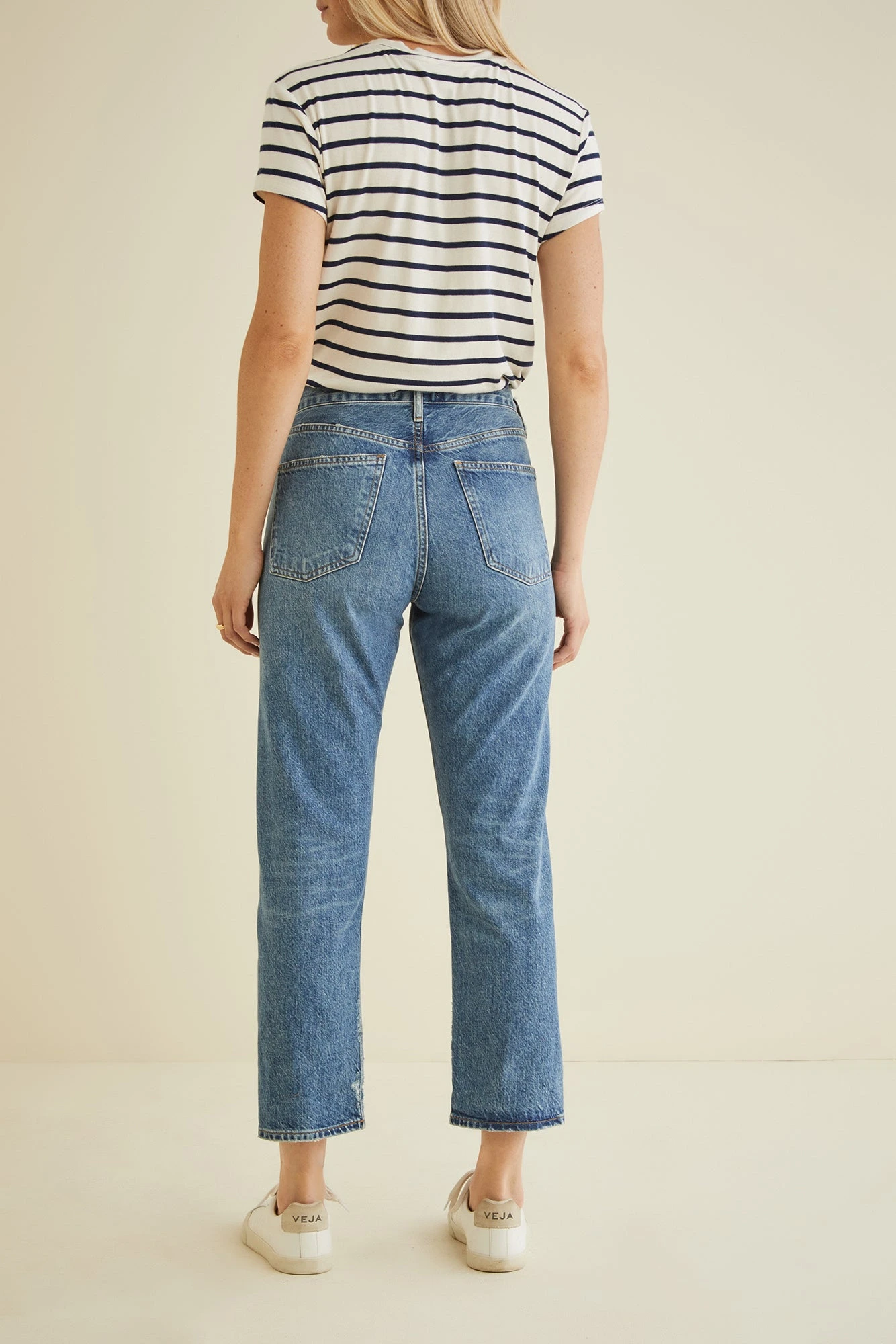 Straight leg jeans with a medium rise that sit square at the waist and are cut just above the ankle. Made from 100% organic cotton, these jeans have the perfect amount of stretch.