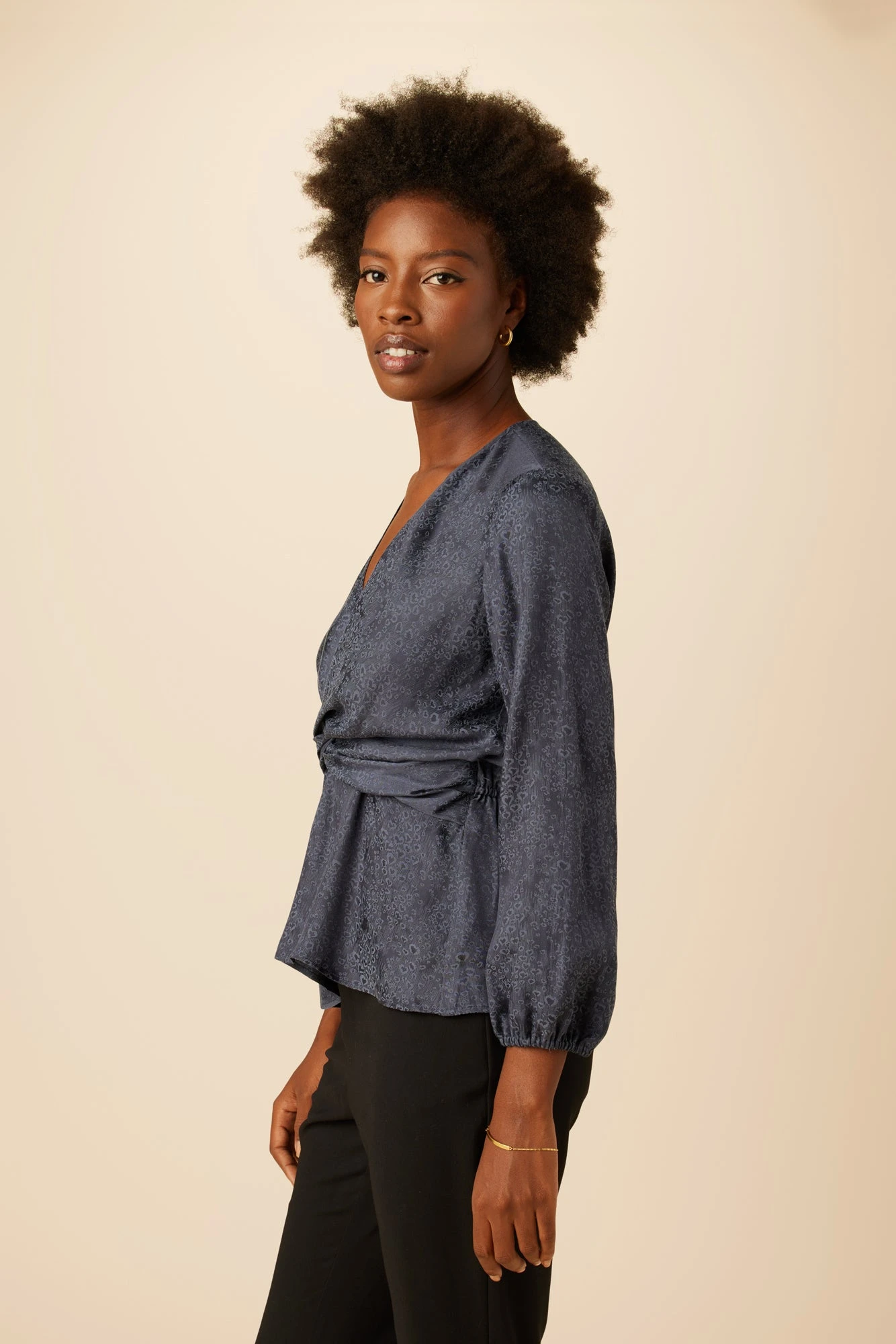 Slim fit, long sleeve blouse featuring twist front detail and elastic at back waist and cuffs. This statement-making blouse is made from a luxe blend of Cupro and Viscose, giving it the perfect amount of texture and sheen.