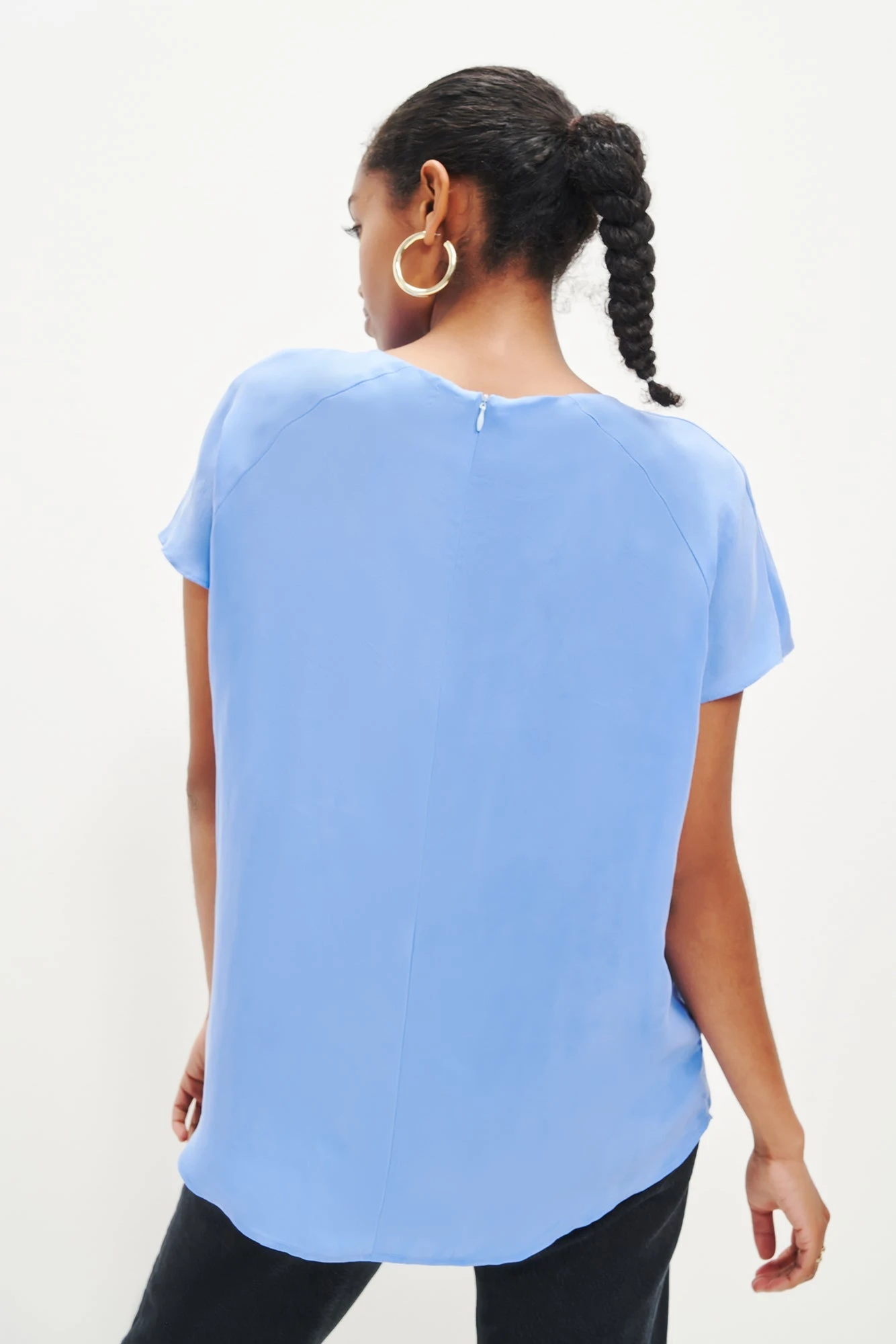 Short sleeve top with a long, relaxed silhouette and zipper closure at the back. Made in our Cottonseed Cupro, a plant-based fabric made entirely from discarded cotton waste.