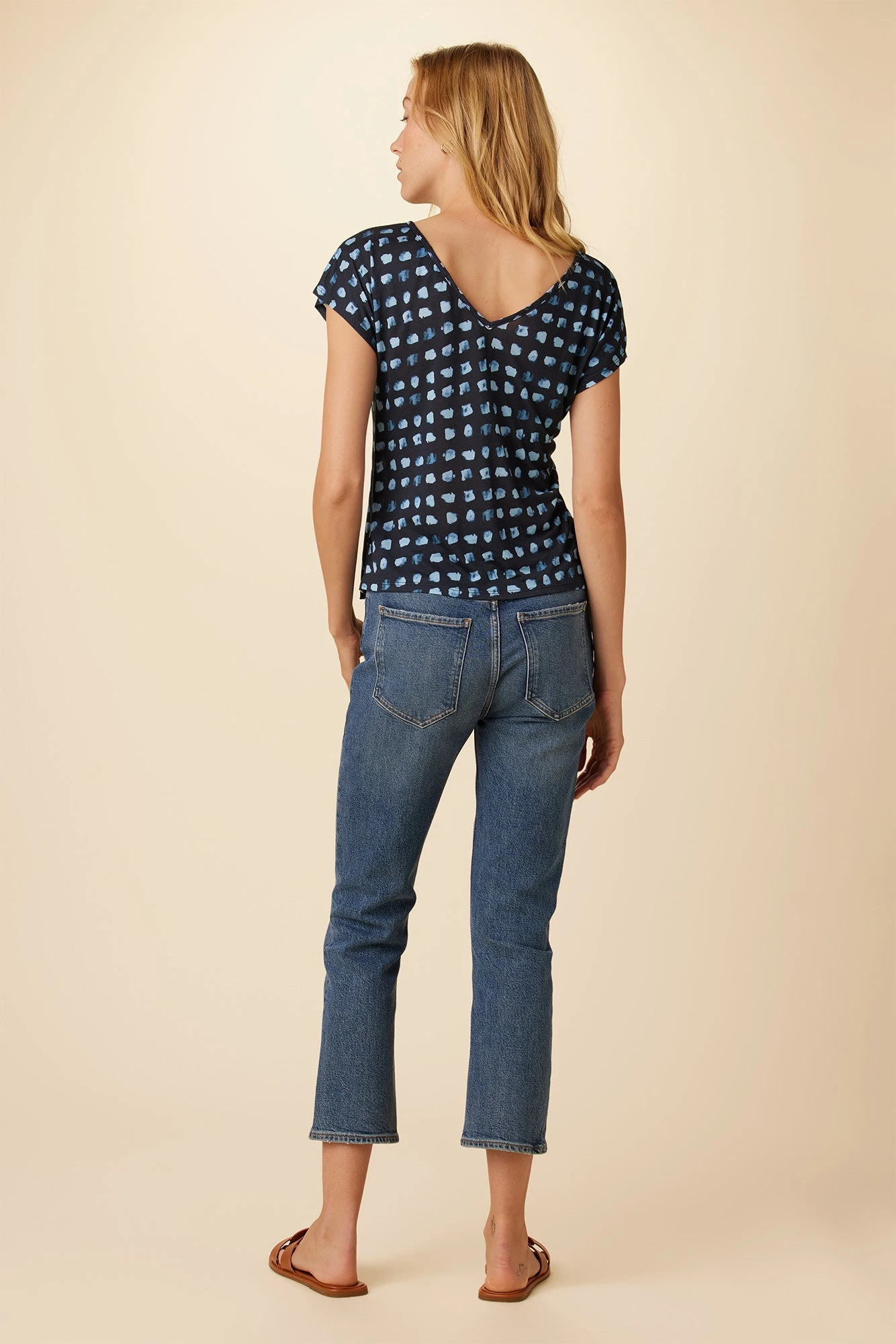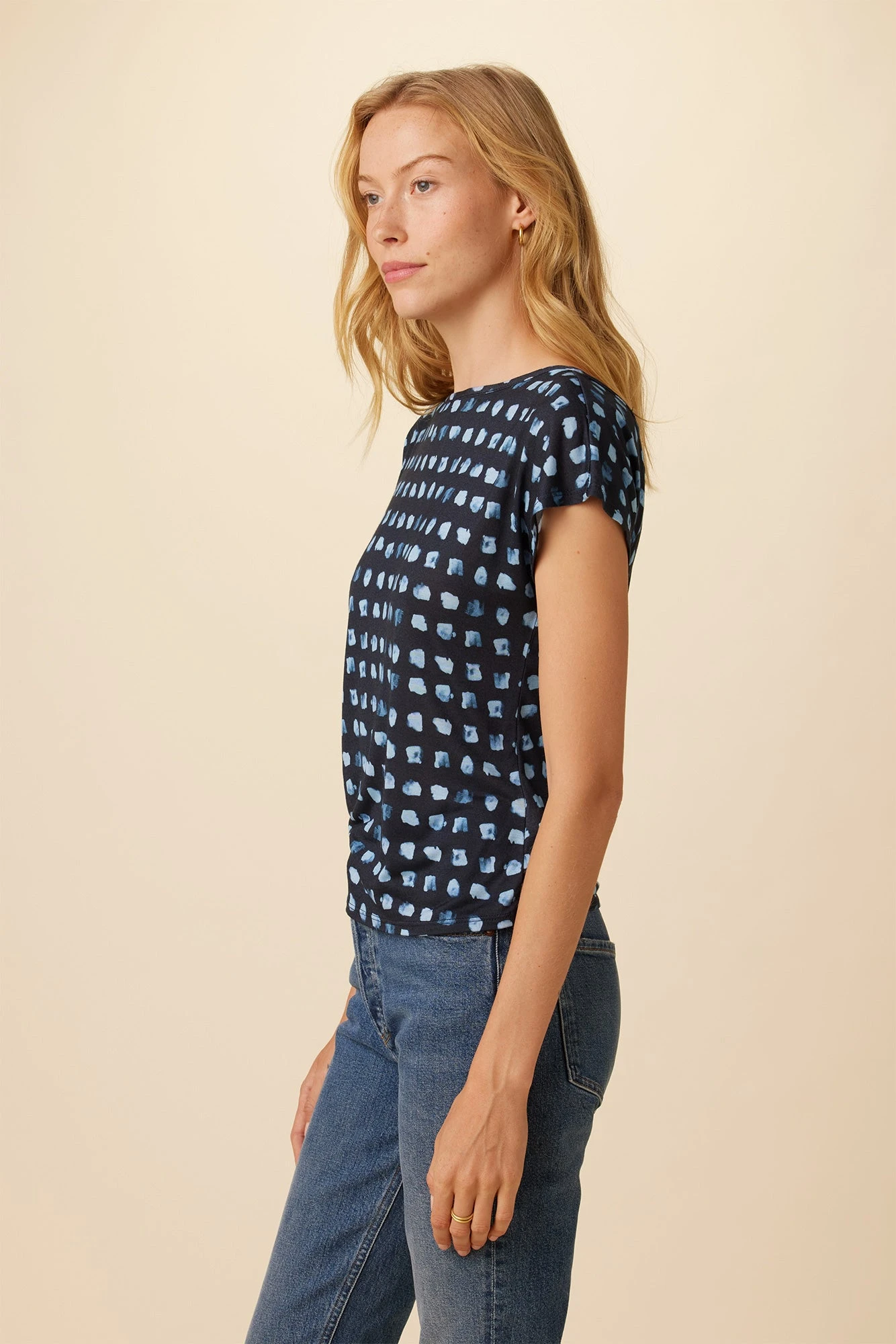 Short sleeve tee with an open neck and v-cut out at the back. Made entirely from Modal for a silky smooth and luxurious feel.