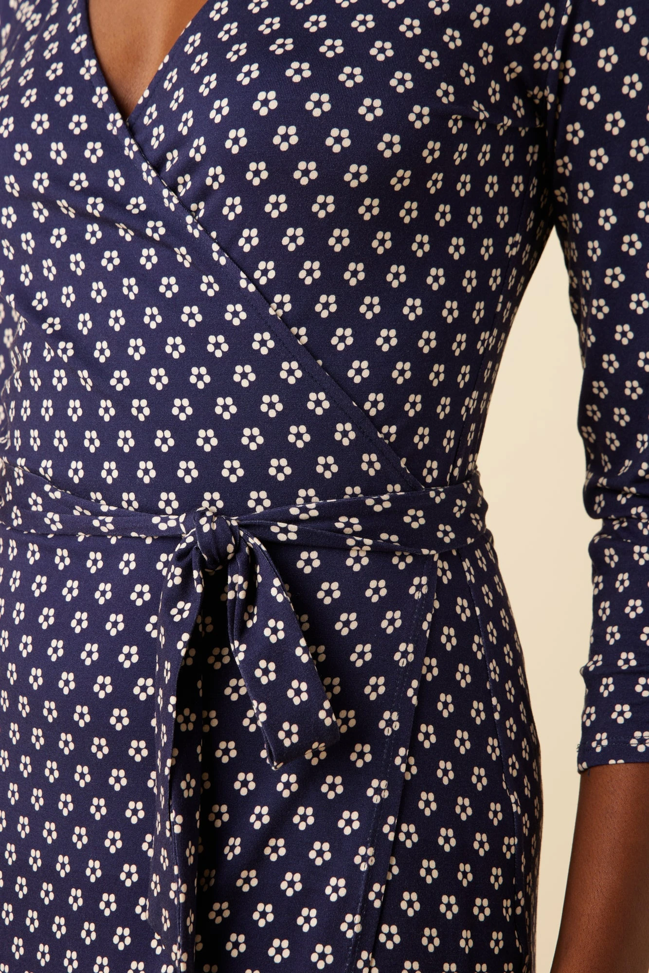Slim fit wrap dress featuring a tulip hem and v-neckline, made from our Viscose Knit fabric for a soft and comfortable fit.