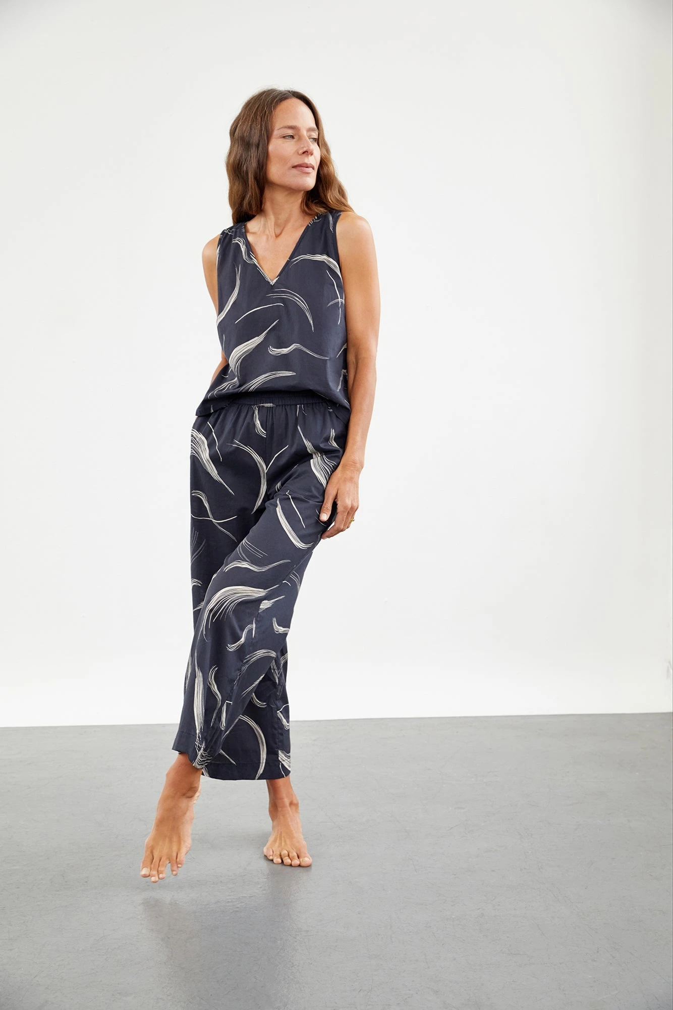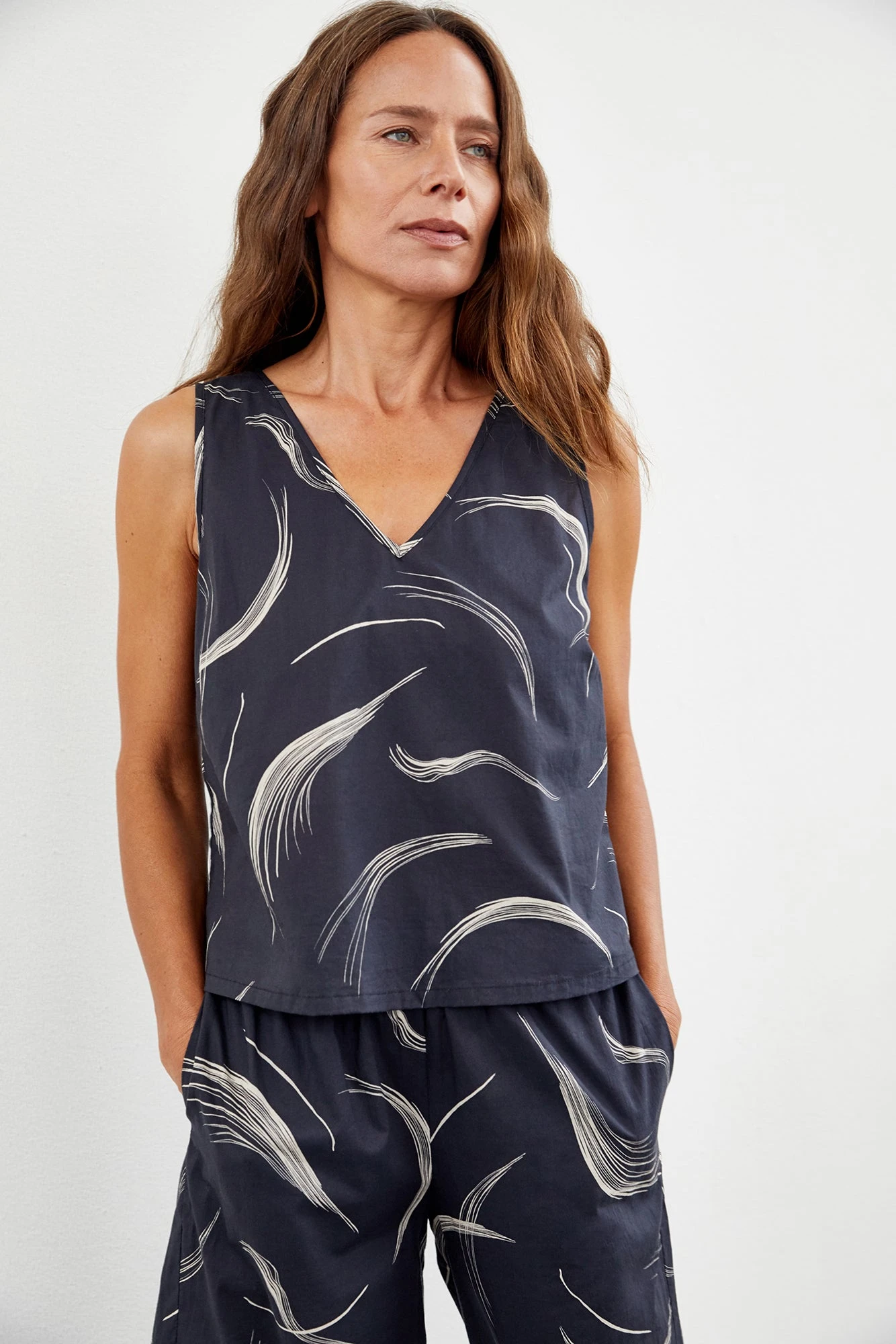 Pajama style tank with a v-neck and loose body. Made from our soft and lightweight organic cotton, perfect for lounging.