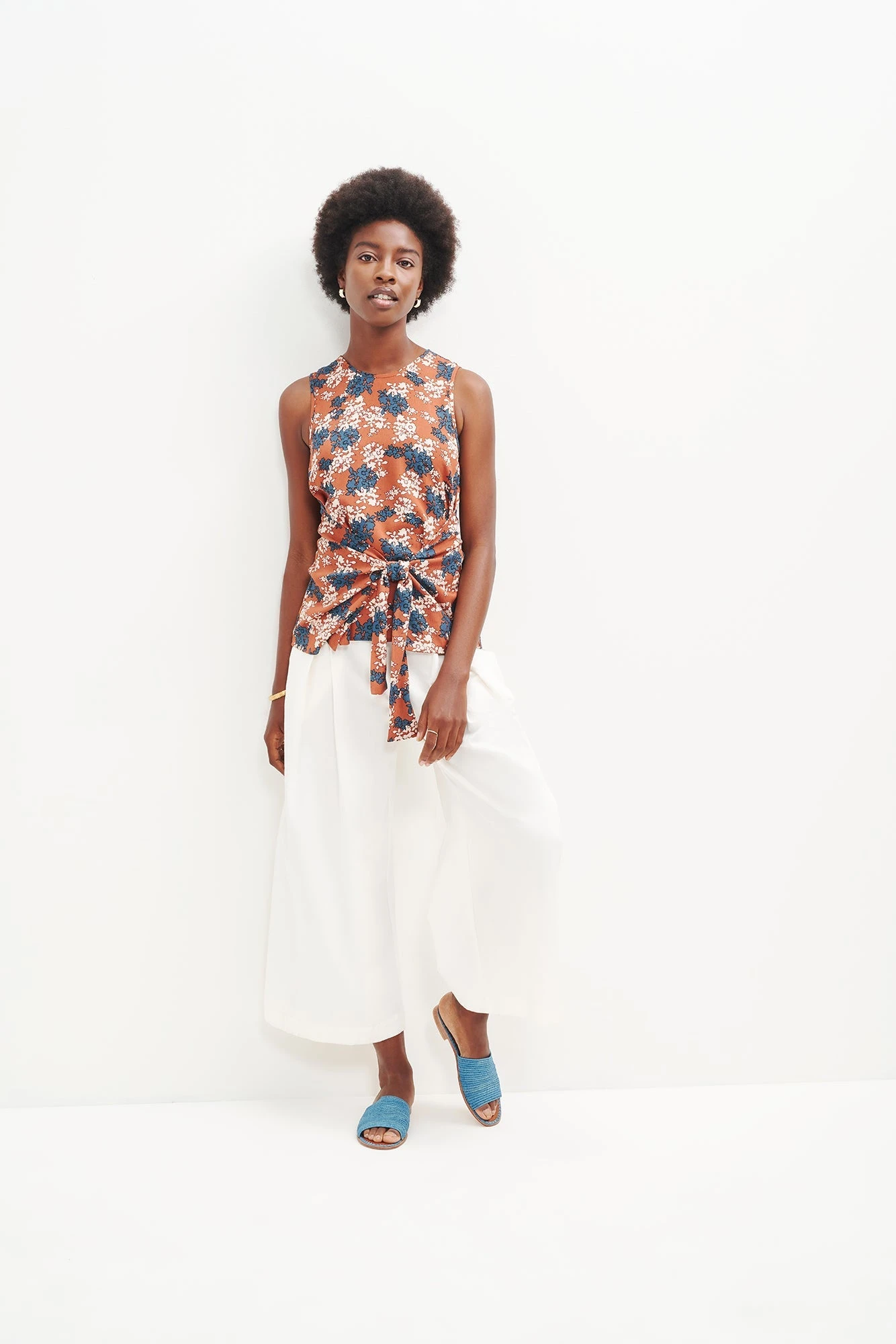 Made from upcycled and repurposed fabrics, this lightweight chic style is just the throw-in-your-bag-and-go tank to take you through every summer occasion and beyond.