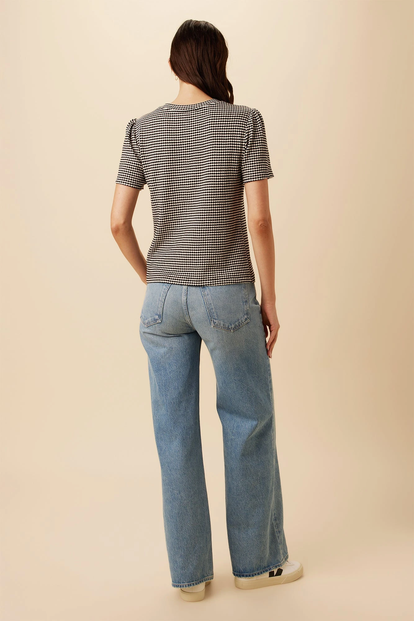 - Basic crewneck tee detailed with pleating at the sleeves for a little added volume