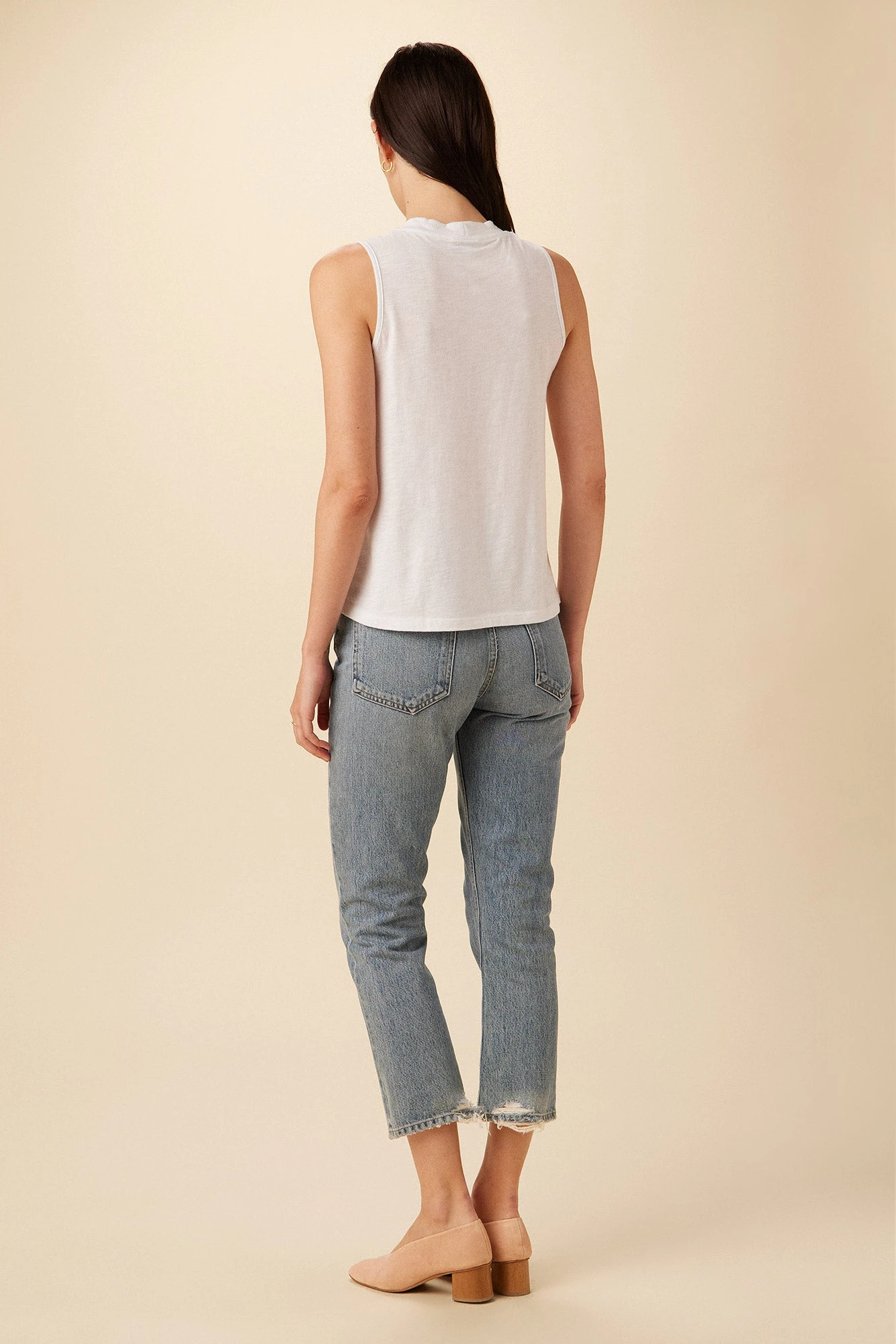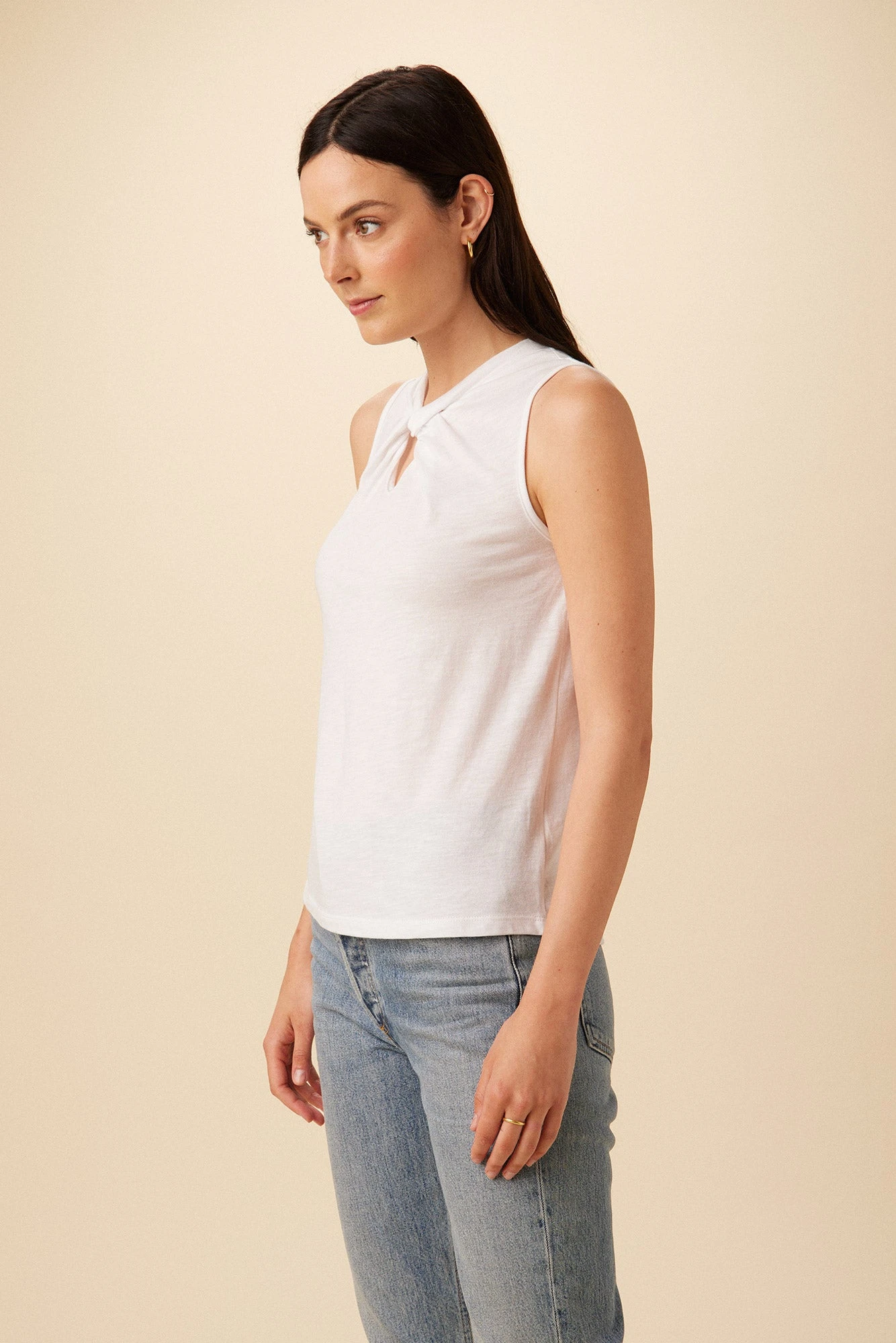 Sleeveless top with a twist detail and keyhole opening at the chest. Made in our Reverie Slub, the perfect blend of Organic Cotton and Modal.